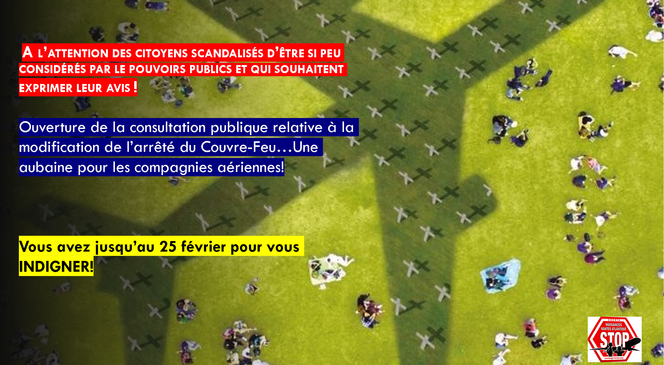 Nous appelons les citoyens à s’informer et à s’exprimer. En effet, l’arrêté modificatif, dans sa version actuelle, n’aura pas pour conséquence d’améliorer la situation des riverains, mais bien au contraire, de fournir un blanc-seing aux compagnies aériennes pour reprogrammer les vols pendant le couvre-feu. Les exceptions à la règle sont si larges qu’il aurait fait sens de demander à la DGAC, pour simplifier le décret, D’ÉTABLIR LA LISTE DES CAS QUI INTERDIRAIENT AUX AVIONS D’ATTERRIR OU DE DÉCOLLER PENDANT LE COUVRE FEU ! L’arrêt modificatif est une régression par rapport à la version actuelle déjà très permissive. Le bilan du couvre-feu réalisé par le COCETA LE CONFIRME !