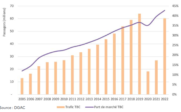 Le trafic des Transporteurs à Bas Coûts (TBC) en france métropolitaine en 2022: https://www.ecologie.gouv.fr/sites/default/files/eclairages_n21.pdf
